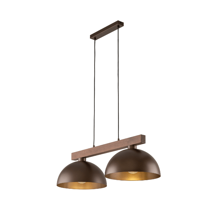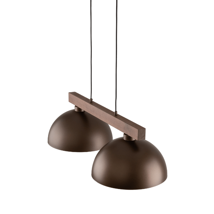 Dwupunktowa brązowa lampa wisząca Oslo TK na drewnianej belce