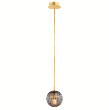 Złota lampa wisząca Paloma z ryflowaną kulą w eleganckim stylu
