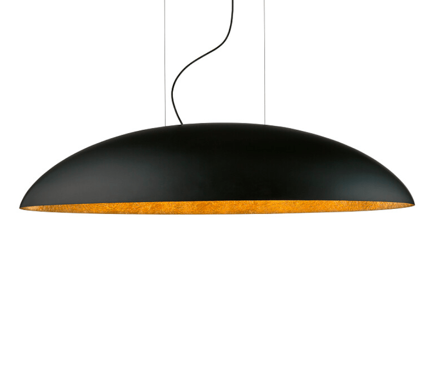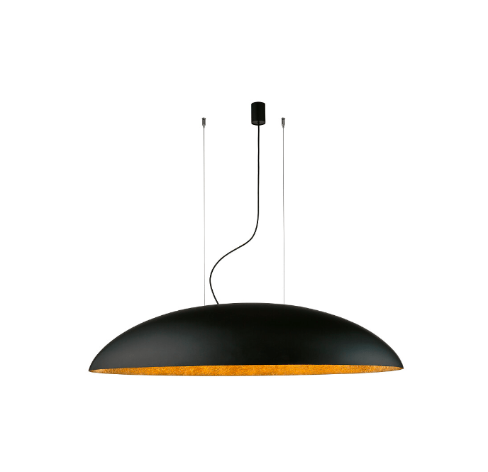 Elegancka wisząca lampa Canoe w czarno-złotym kolorze o długości 117 cm