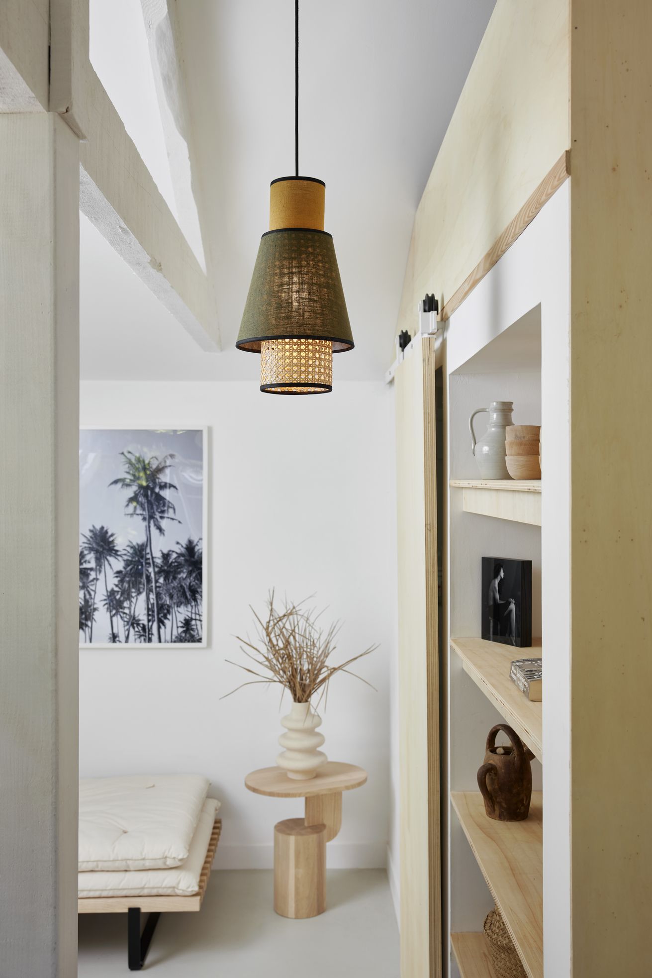 Elegancka, wisząca lampa Singapour XS w odcieniach kaki i curry