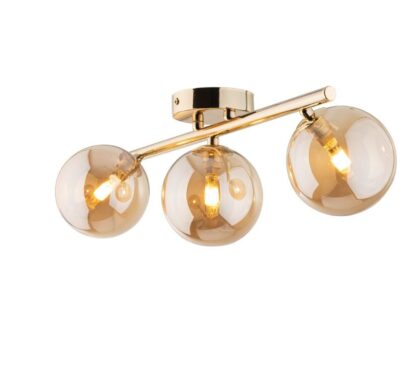 Przejdź do sklepuElegancka złota lampa sufitowa Estera z trzema bursztynowymi kloszami