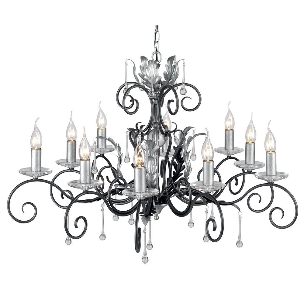 Elegancki żyrandol Amarilli z dziesięcioma świecznikami w czarno-srebrnym wykończeniu