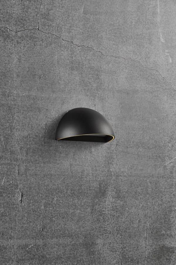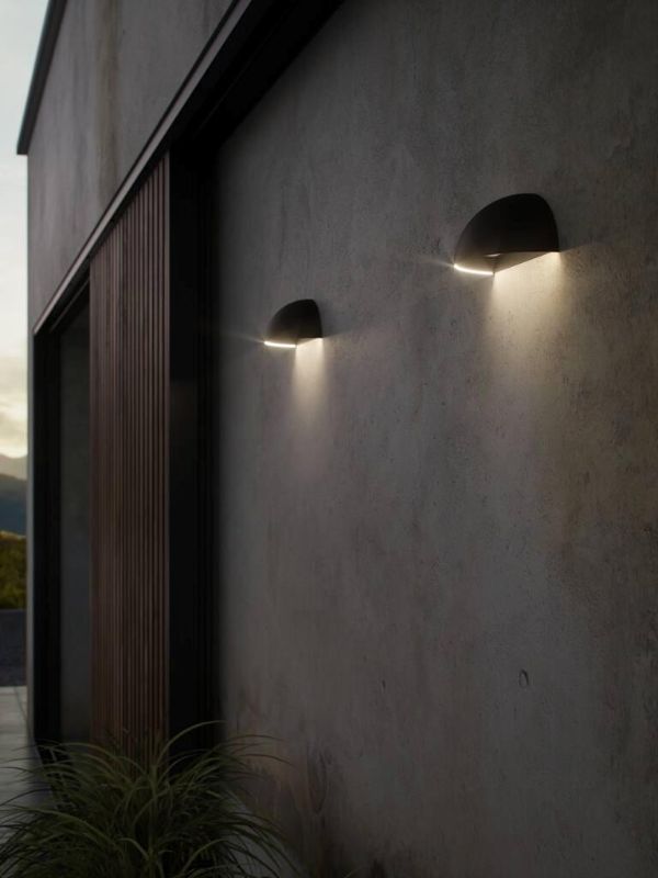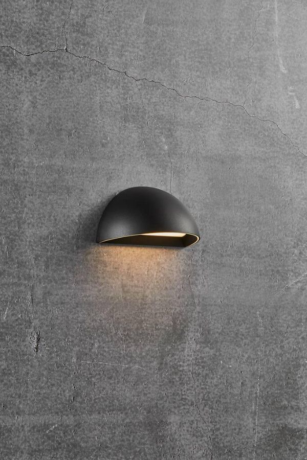 Czarny kinkiet zewnętrzny z dwoma funkcjami światła. Po zmroku lampa świeci delikatnym światłem (obwódka wokół klosza), po wykryciu ruchu może uruchomić się pełnym światłem (wymagany czujnik Smart Light do kupienia oddzielnie). Lampa, z możliwością połączenia Bluetooth jest częścią grupy oświetleniowej Nordlux Smart Light, która umożliwia kontrolowanie lamp z poziomu aplikacji na telefon.