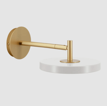 Nowoczesny biało-złoty kinkiet LED Asteria Wall z płaskim, ruchomym kloszem