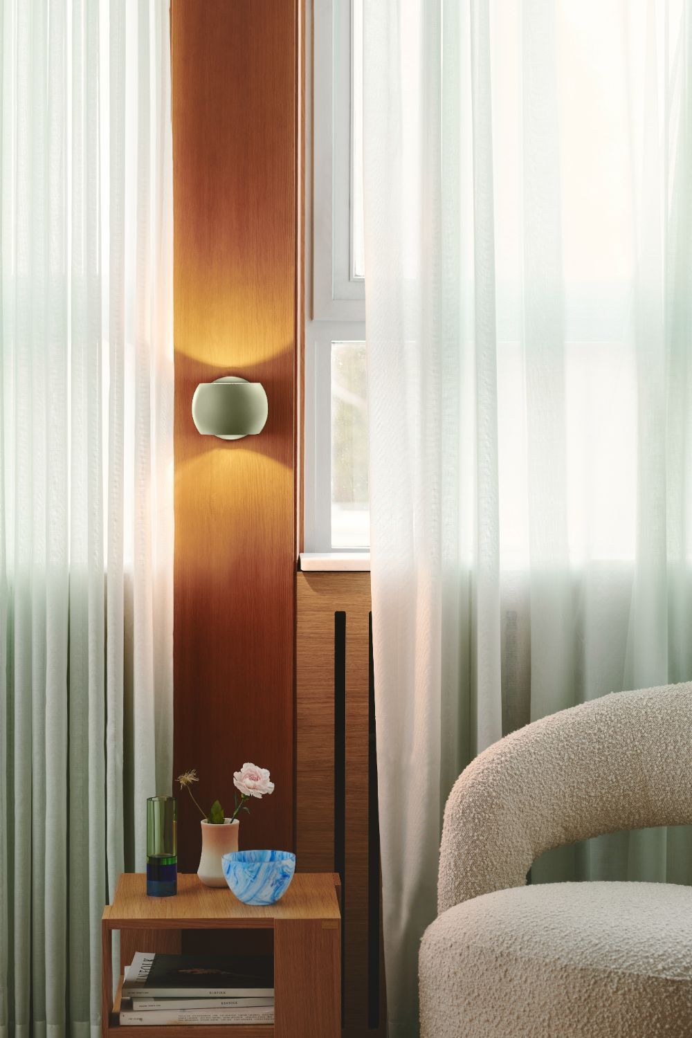 Minimalistyczny kinkiet w oryginalnym, zielonym odcieniu, regulowany na boki (360°).