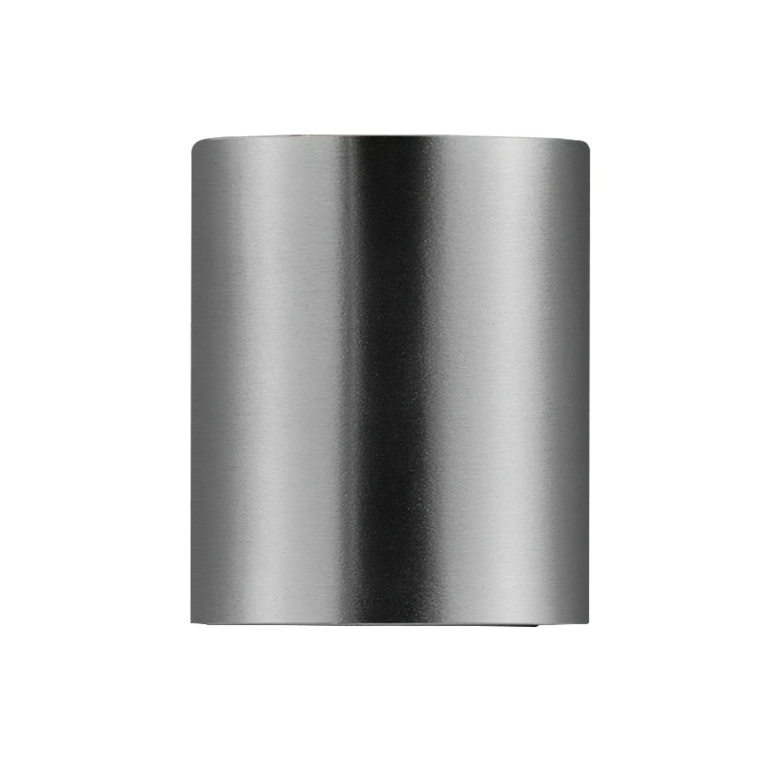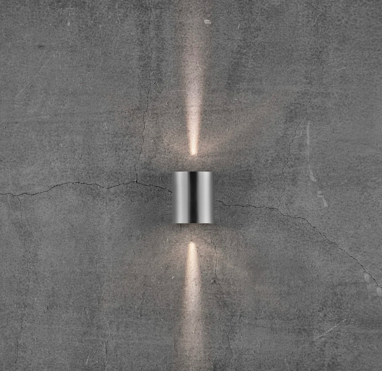 Srebrny kinkiet elewacyjny ze światłem góra-dół.