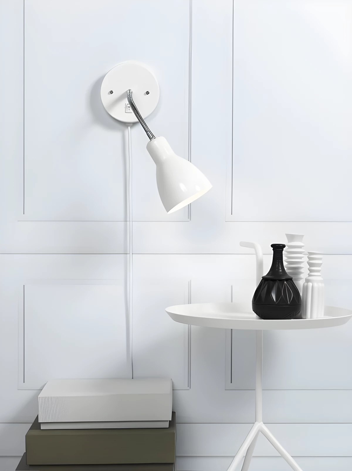 Kinkiet ścienny Cyclone biały z elastycznym ramieniem i włącznikiem