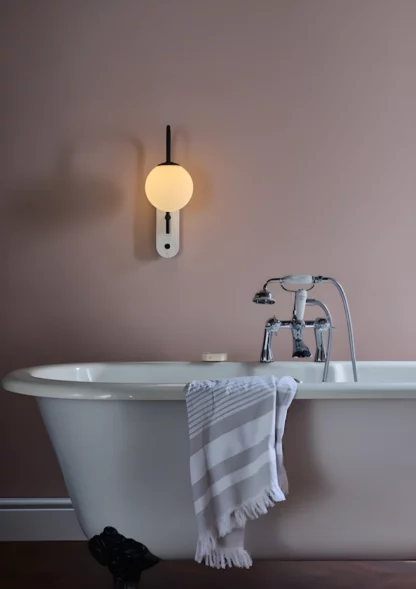 Kinkiet Deuce to propozycja, która spodoba się każdemu. Marmurowa podstawa idealnie komponuje się z ciemnoszarym ramieniem oraz mlecznym kloszem. Posiada klasę szczelności IP44, więc można zamontować ją w łazience nad wanną lub lustrem.