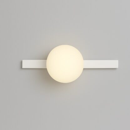 Przejdź do sklepuKinkiet Garda w białym kolorze z kulistym, szklanym kloszem na metalowej listwie