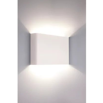 Biały kinkiet Bergen o prostokątnym kształcie, zapewniający dekoracyjne oświetlenie