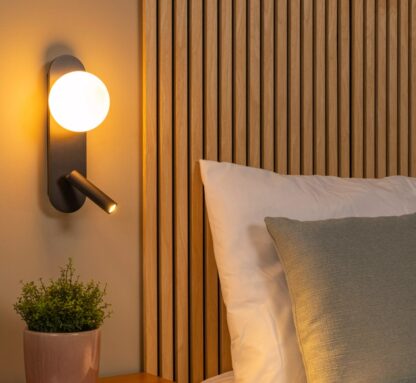 Przejdź do sklepuKinkiet Kelly w nowoczesnym stylu z kulą i reflektorem – podwójne źródło światła