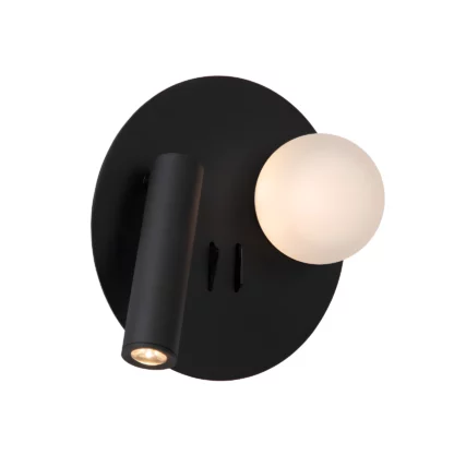 Przejdź do sklepuKinkiet LED Matiz w kolorze czarnym – okrągła kula z reflektorem i portem USB