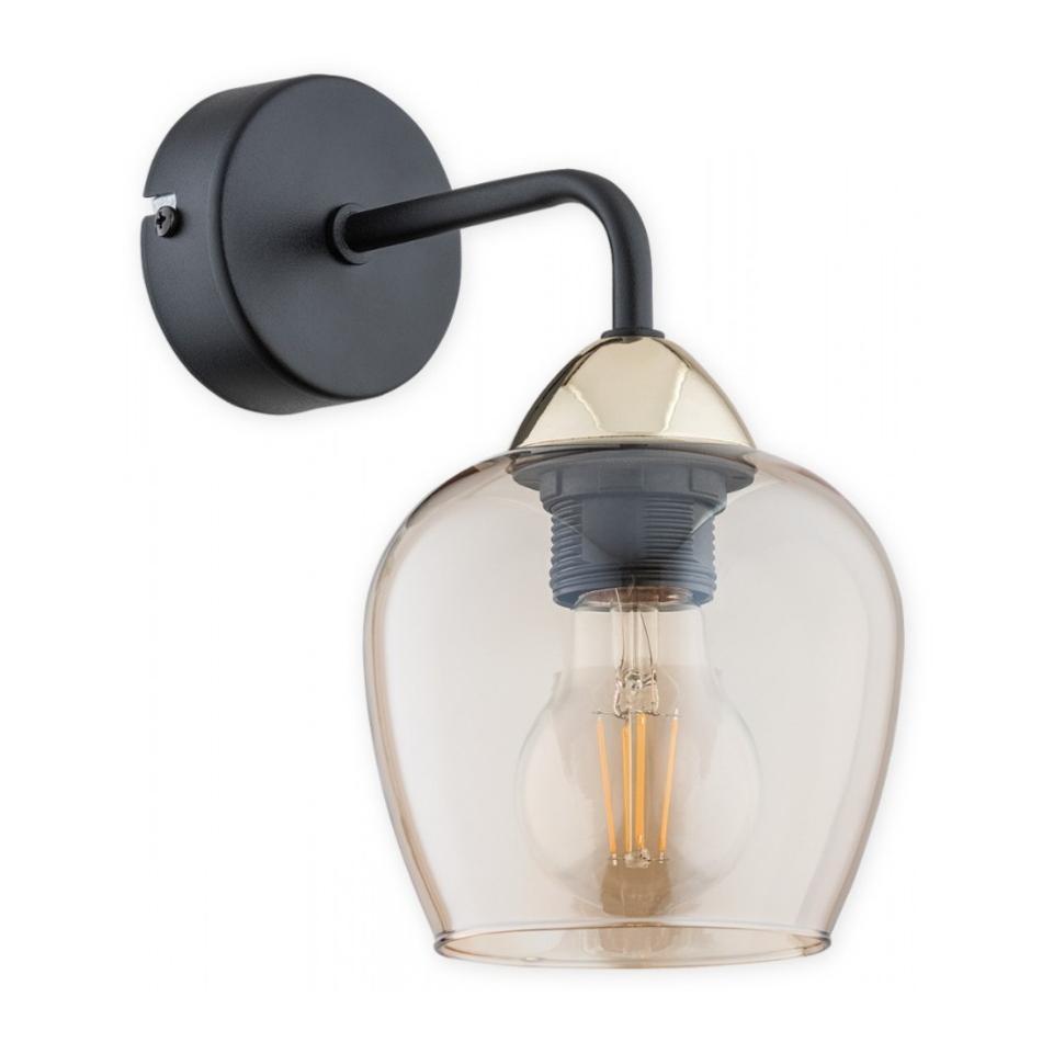 Kinkiet Margo czarny z bursztynowym szklanym kloszem E27