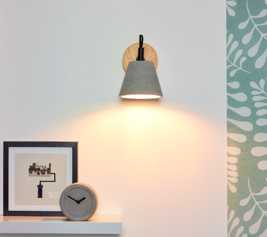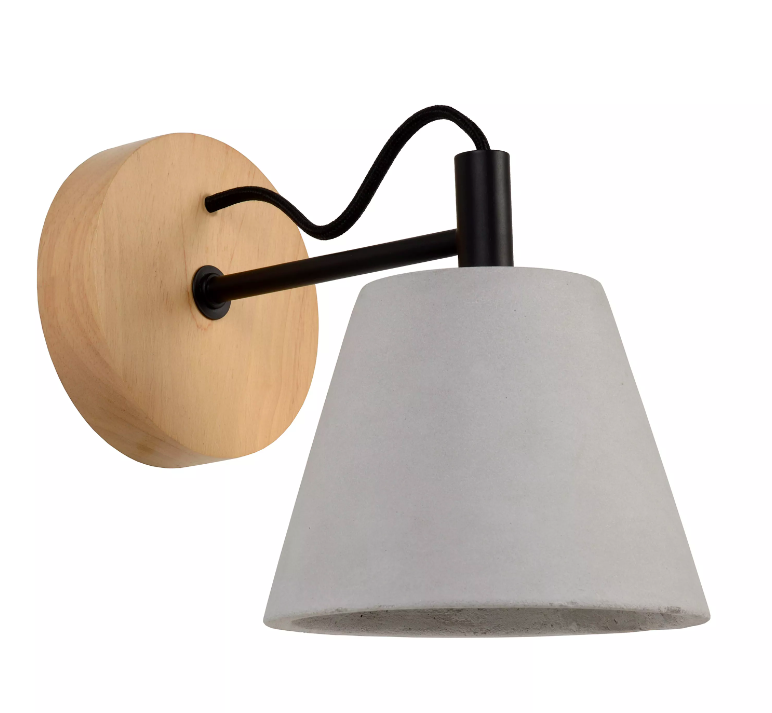 Kinkiet Possio z betonu na drewnianej podstawie