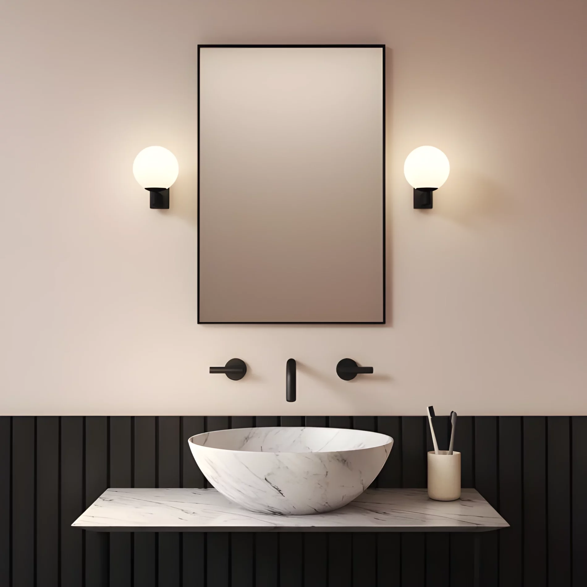 Kinkiet Sagara to dodatek, który fantastycznie doświetli każde lustro w łazience i nie tylko. Mleczny, szklany klosz wspaniale rozprasza światło a dodatkowo cudownie komponuje się z czarną podstawą. Posiada klasę szczelności IP44