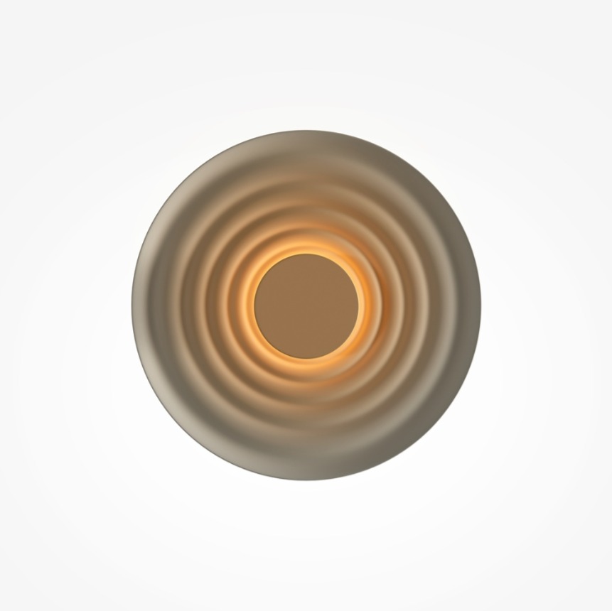 Okrągła tarcza z koncentrycznymi falami, które przypominają kręgi na wodzie albo rzeźbione ceramiczne misy japońskie. Przetłoczenia na froncie nie są tylko dekoracyjne, bo każda fala łapie i łagodnie odbija światło wydobywające się z centralnego otworu, tworząc na powierzchni lampy subtelną grę cieni i ciepłej poświaty. Kinkiet ścienny Nami w kolorze szarym, bliskim ciepłemu piaskowi, wpisuje się w estetykę japandi i wabi-sabi, gdzie liczy się faktura i organiczna forma zamiast ostrych linii.
