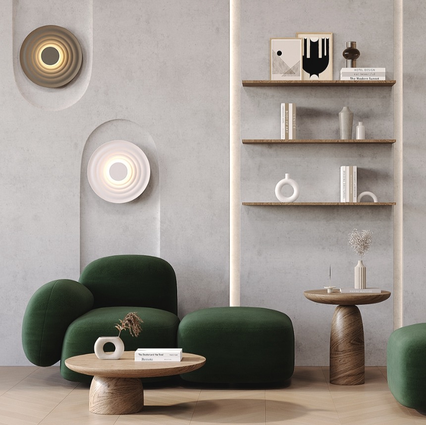 Front tego kinkietu to seria koncentrycznych fal wypukłych w szaro-beżowym, ciepłym odcieniu, które na żywo przypominają kamień wrzucony w wodę. Przetłoczenia nie są tylko ozdobą, bo to właśnie dzięki nim światło LED ukryte w centralnej części oprawy łapie się na krawędziach kolejnych pierścieni. Kinkiet dekoracyjny Nami emituje miękkie, złociste światło, które podkreśla fakturę ściany i buduje kameralny nastrój. Kąt rozsyłu 180° i wskaźnik oddawania barw CRI 90 sprawiają, że kolory ściany i otoczenia wyglądają naturalnie. Jako kinkiet do salonu, sypialni lub korytarza pełni rolę świetlnego akcentu, który przyciąga wzrok samą formą nawet w ciągu dnia, gdy LED jest wyłączony.Zapytaj o ten produkt