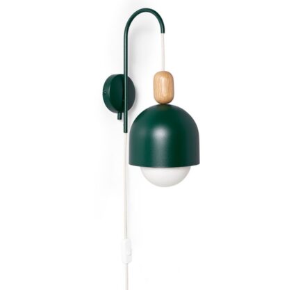 Marzysz o lampie, która wprowadzi do sypialni klimat eleganckiego retro z nutą współczesności? Kinkiet Ovoi to niezwykłe połączenie głębokiej butelkowej zieleni z ciepłem naturalnego drewna dębowego. Ten designerski model wyróżnia się nie tylko estetyką, ale przede wszystkim praktycznym rozwiązaniem - dzięki przewodowi z wtyczką możesz umieścić go w dowolnym miejscu bez konieczności kucia ścian czy wzywania elektryka.