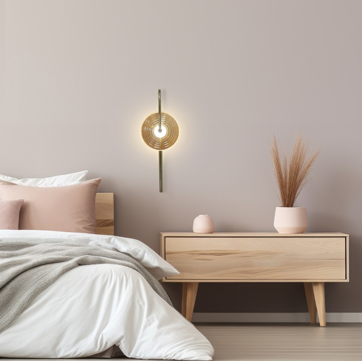 Kinkiet Plato LED z bursztynowym szkłem do sypialni