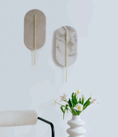 - Elegancki kinkiet z dekoracyjną płytą gresową w neutralnym odcieniu