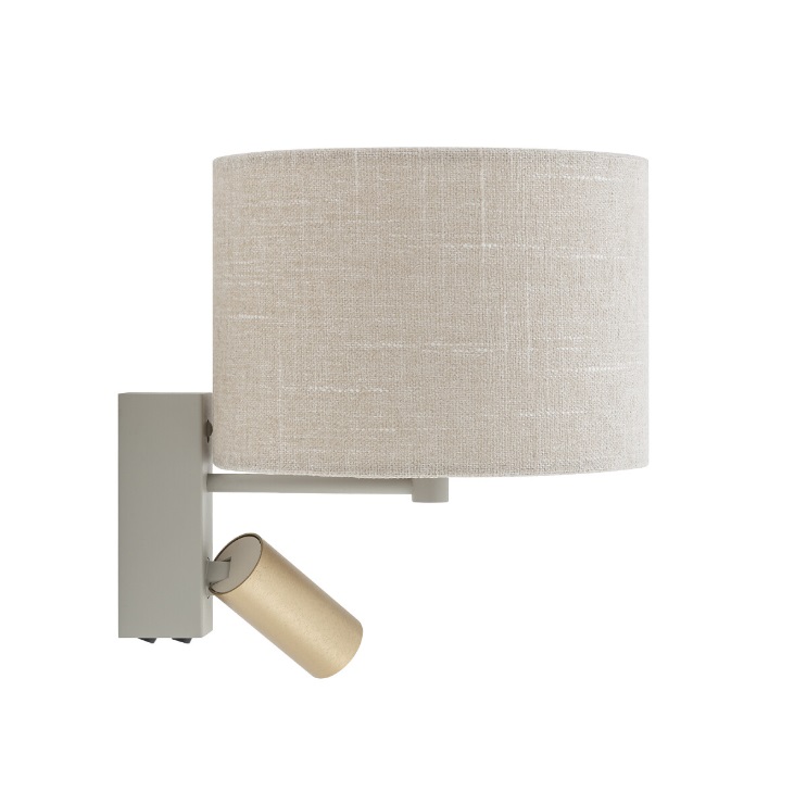 Kinkiet ścienny Santana A z beżowym abażurem i regulowanym reflektorem do czytania