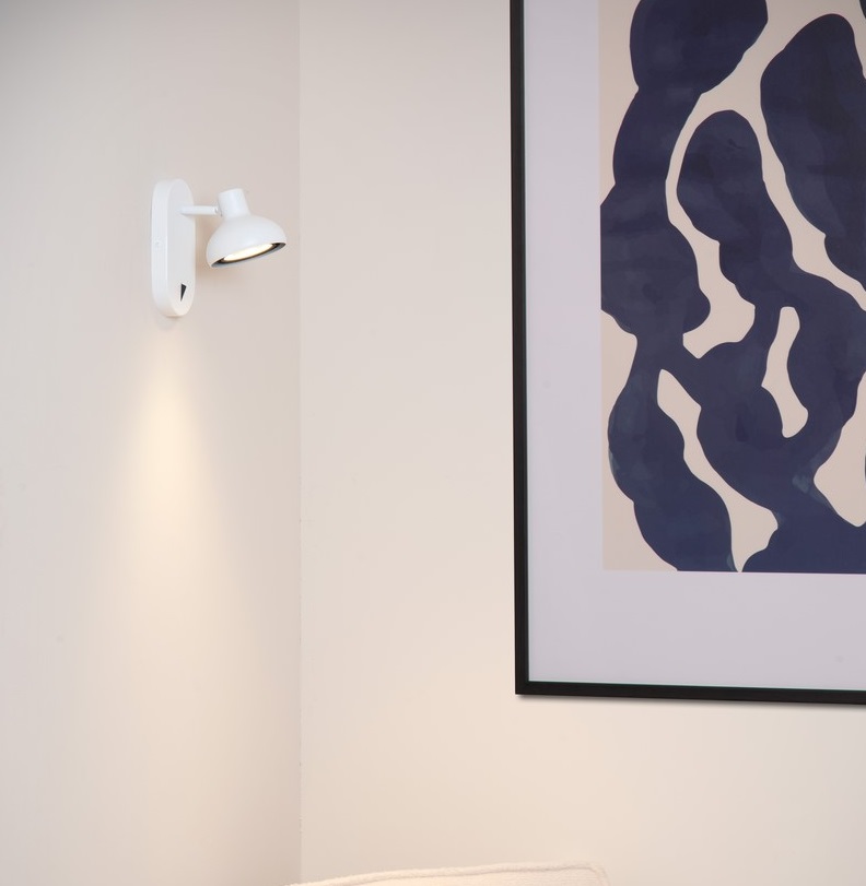 Kinkiet Sensas w kolorze białym z włącznikiem – idealny do sypialni