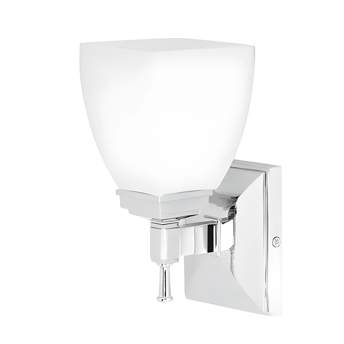 Charakterystyka lampy: numer katalogowy BATH/SB1, wykonanie - chrom, mleczne szkło, dodatkowe informacje - klasyczny, szklane, typ trzonka żarówki G9, moc 3.5 W.