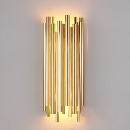Kinkiet Tubo w stylu modern classic, który prezentuje się fantastycznie w salonie, ale również sypialni. Promienie kierowane są góra-dół, co pozawala na wspaniałe doświetlenie pomieszczenia. Złot tuby cudownie rozpraszają światło.