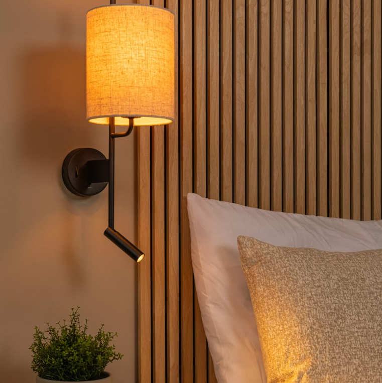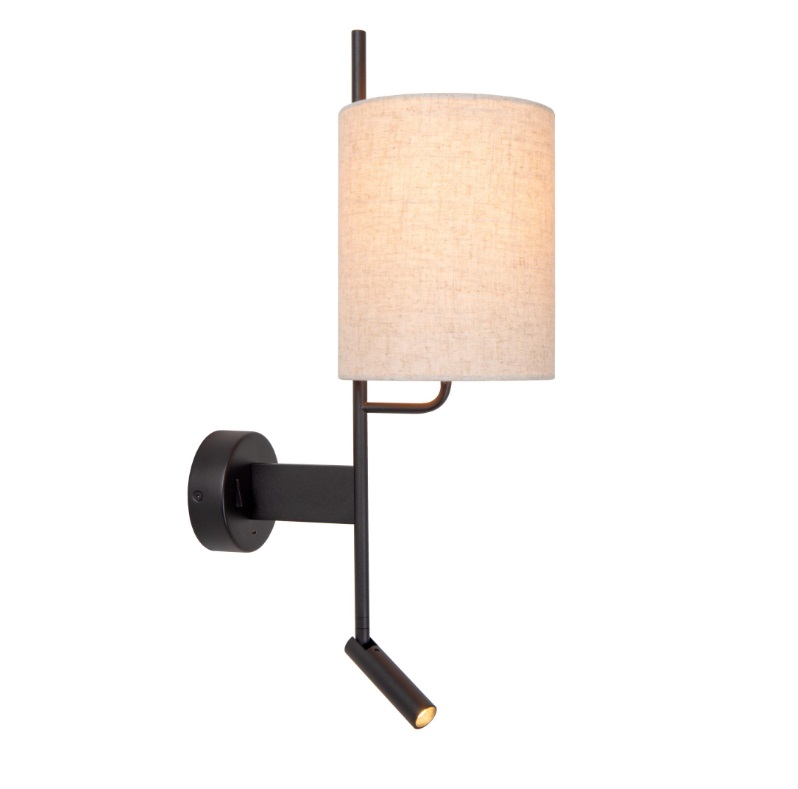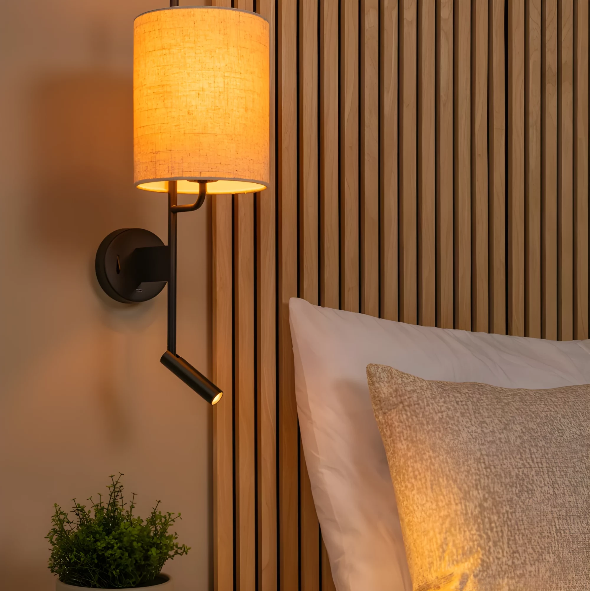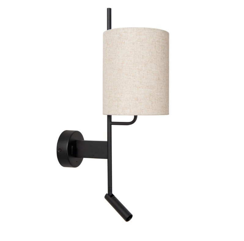 Kinkiet w kolorze czarnym z beżowym abażurem Magic 2 – zasilanie USB-C i włączniki