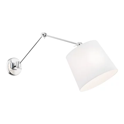 Kinkiet Zakyntos Bis to przecudowna propozycja do sypialni, szczególnie do zamontowania nad łóżkiem. Regulowane, długie ramię pozwoli na idealnie dostosowanie źródła światła. Biały abażur nada pomieszczeniu elegancji.