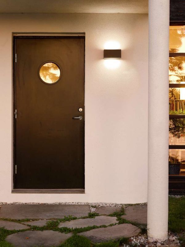 Szary kinkiet Asker na elewację przy drzwiach