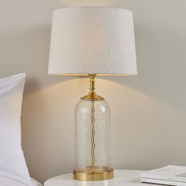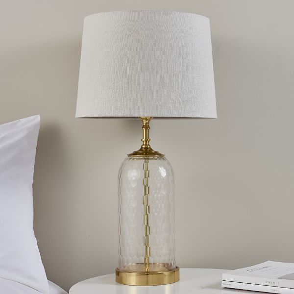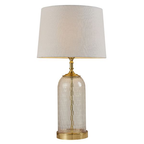 Klasyczna szklana lampa stołowa Wistow z abażurem w naturalnym odcieniu
