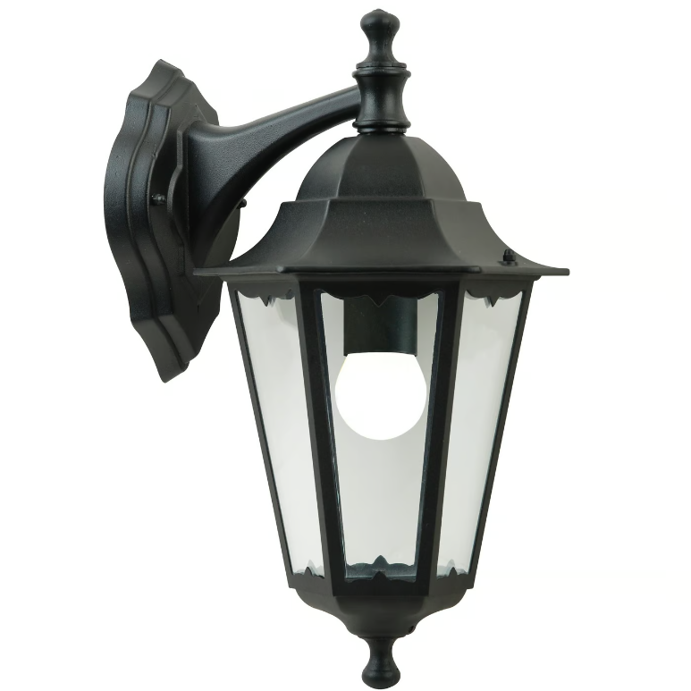 Klasyczny czarny kinkiet zewnętrzny Cardiff Down o stopniu ochrony IP44