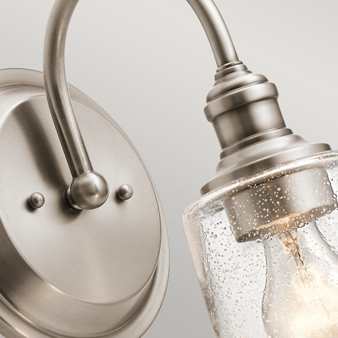 Klasyczny kinkiet w kolorze pewter Waverly z szkłem z efektem bąbelków powietrza