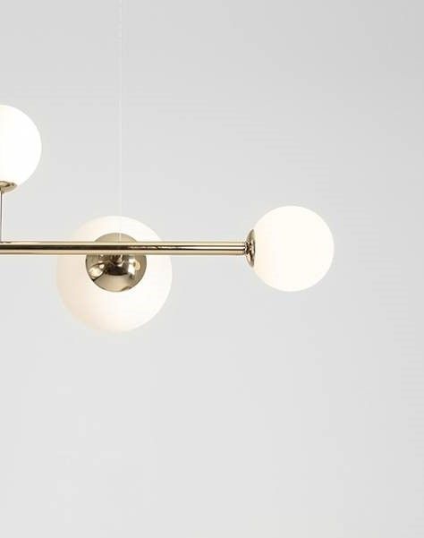 Lampa Balia to prawdziwy majstersztyk minimalistycznej elegancji. Dotykając jej gładkich, szklanych kloszy czujesz solidność wykonania, a ciepły odcień złotego metalu sprawia, że konstrukcja nabiera luksusowego charakteru. Mleczne kule o idealnie symetrycznych kształtach tworzą harmonijną kompozycję, która przykuwa wzrok swoją prostotą i wyrafinowaniem jednocześnie.