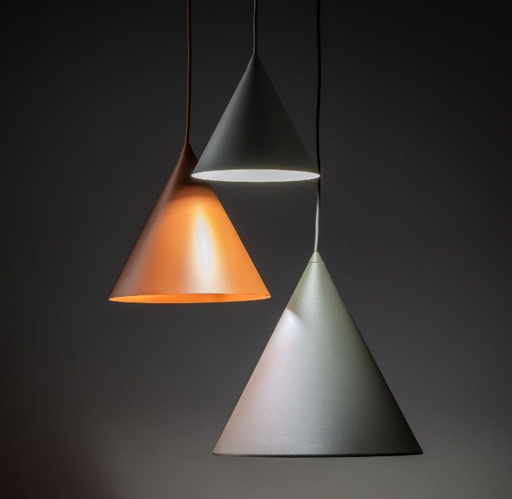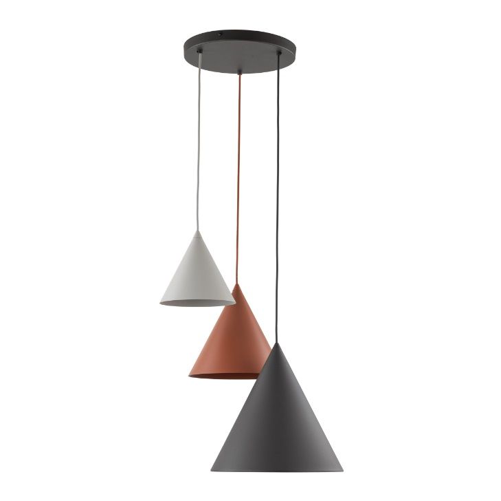 Kolorowy żyrandol Cono MIX TK z wiszącymi stożkami w odcieniach beżu, cegły i czerni