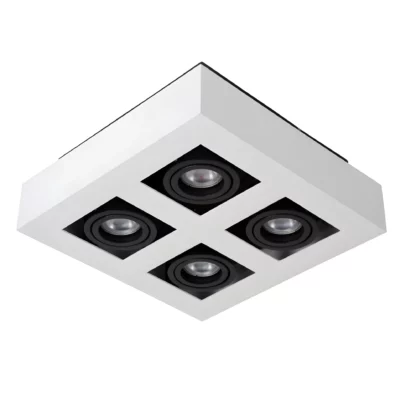 Kwadratowa lampa sufitowa natynkowa Xirax z czterema białymi reflektorami