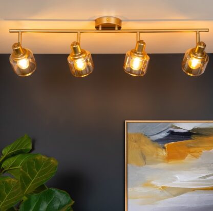 Lampa Bjorn 4 ze szkła na złotej listwie – idealna do sypialni