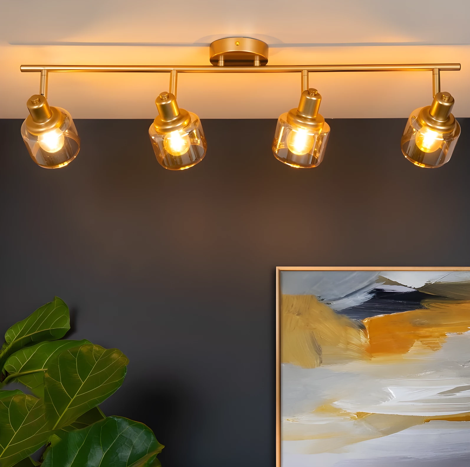 Lampa Bjorn 4 ze szklanymi kloszami i złotą listwą – idealna do sypialni