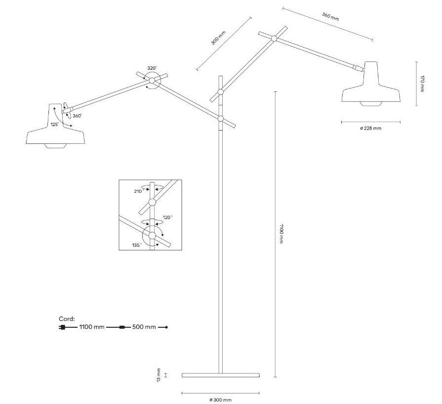 Nowoczesna lampa podłogowa Arigato Floor 2 imponuje funkcjonalnością. Dwa niezależne od siebie ramiona umożliwiają jednoczesne doświetlenie dwóch różnych stref pomieszczenia, dlatego doskonale wkomponuje się w minimalistyczne, nowoczesne aranżacje.