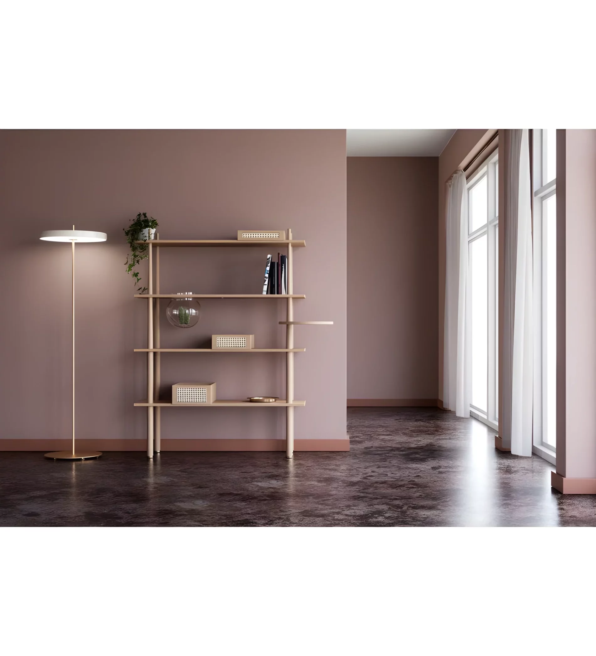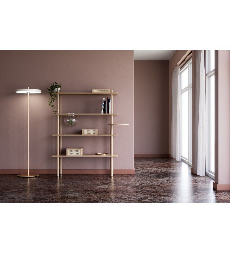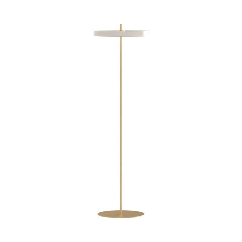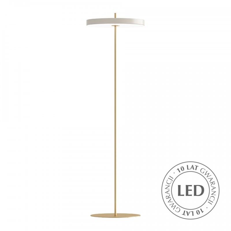 Lampa podłogowa Asteria to nowoczesne wykonanie, które będzie doskonałym oświetleniem fotela lub sofy w salonie. Lampa posiada wbudowany panel led o ciepłej barwie światła 3000k. Biały klosz cudownie komponuje się z miedzianą podstawą, razem prezentują się niezwykle elegancko.
