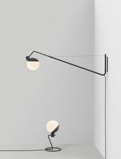 Lampa ścienna Baluna - Grupa Products - czarno-biała kula, długie ramię