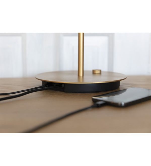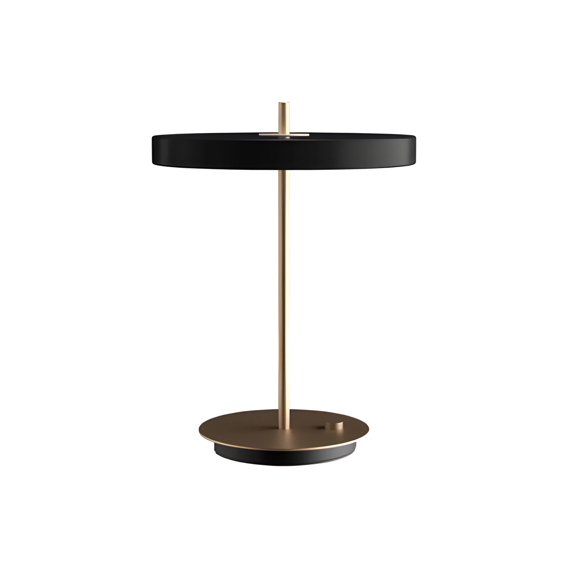 Lampa stołowa Asteria to doskonała propozycja do biura lub gabinetu. W lampie został zamontowany panel led o ciepłej barwie światła, dlatego wspaniale oświetli wnętrze. Czarny klosz wspaniale komponuje się ze złota podstawą.