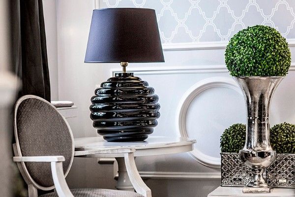 Ładny model lampy stołowej do takich pomieszczeń jak salon, sypialnia - od znanego producenta 4concepts. Charakterystyka lampy: numer katalogowy L216222514, wykonanie - czarne szkło, czarny abażur ze złotym wnętrzem, dodatkowe informacje - styl modern classic, styl nowoczesny, szklane, z abażurem, typ trzonka żarówki E27, moc 60 W.
