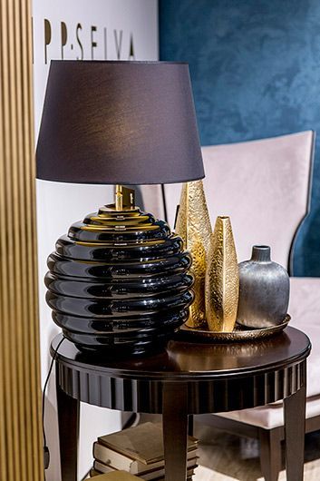 czarne szkło, czarny abażur ze złotym wnętrzem