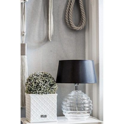 Bardzo ciekawy przykład lampy stołowej do takich pomieszczeń jak salon, sypialnia - od uznanego producenta 4concepts. Charakterystyka lampy: numer katalogowy L216081514, wykonanie - transparentne szkło, czarny abażur złoty w środku, dodatkowe informacje - styl modern classic, szklane, z abażurem, typ trzonka żarówki E27, moc 60 W.