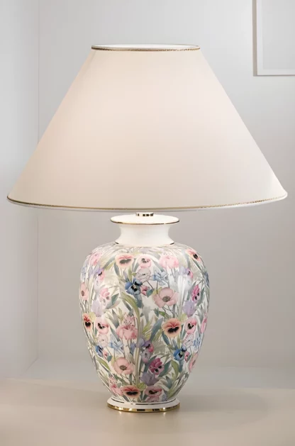 Nietypowy model lampy stołowej do takich pomieszczeń jak salon, sypialnia - od słynnego producenta Kolarz. Charakterystyka lampy: numer katalogowy 0014.75, dodatkowe informacje - ceramiczne, klasyczny, z abażurem, typ trzonka żarówki E27, moc 60 W.