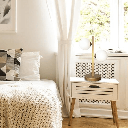 Lampka Kama to wspaniała i niezwykle elegancka propozycja na szafkę nocną. Wspaniały wygląd zawdzięcza dwóm mlecznym kloszom na złotej podstawie, która prezentuje się niezwykle elegancko. Cudowna do każdego pomieszczenia.