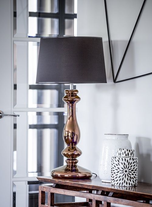 Lampa stołowa Versailles – kolor miedź, połysk, Czarny – L204261250