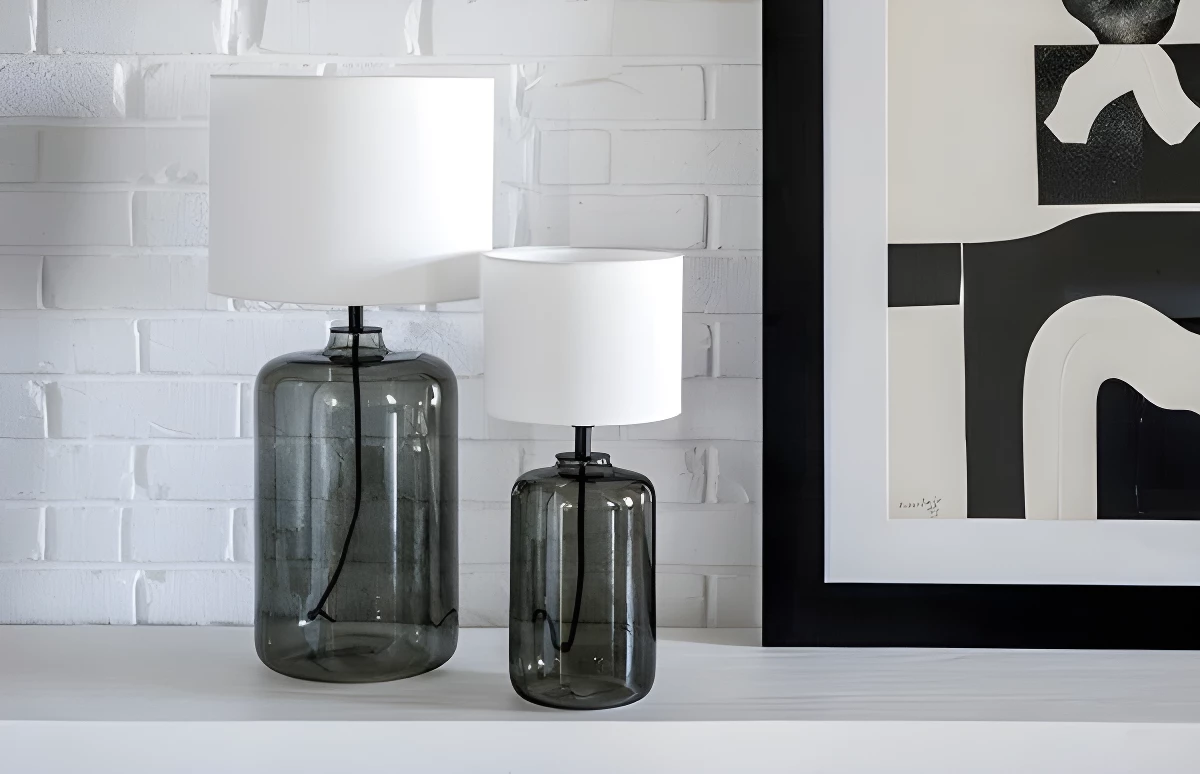 Lampa stołowa Ystad - kolor biały, transparentny, Szary - L050102414